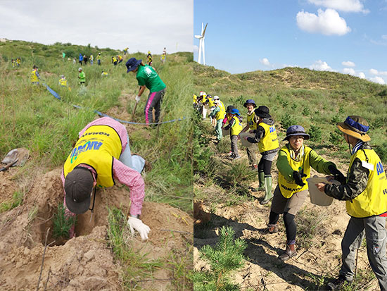 自2005年起,小松开始捐款资助非营利组织在中国内蒙古科尔沁地区开展的沙漠绿化活动。2009年后,小松日本总公司和小松中国集团各公司开始组织员工作为志愿者共同赴当地参加植树活动。2024年开始,小松中国与中国绿化基金会合作,携手在内蒙古阿拉善地区支持沙漠绿化项目。经过十几年的持续努力,已累计植树超过43万棵,存活率达71%。